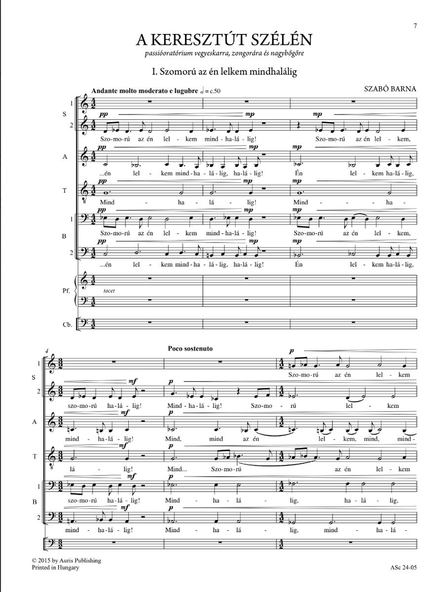 Szabó Barna: A keresztút szélén – passió-oratórium vegyeskarra, zongorára és nagybőgőre