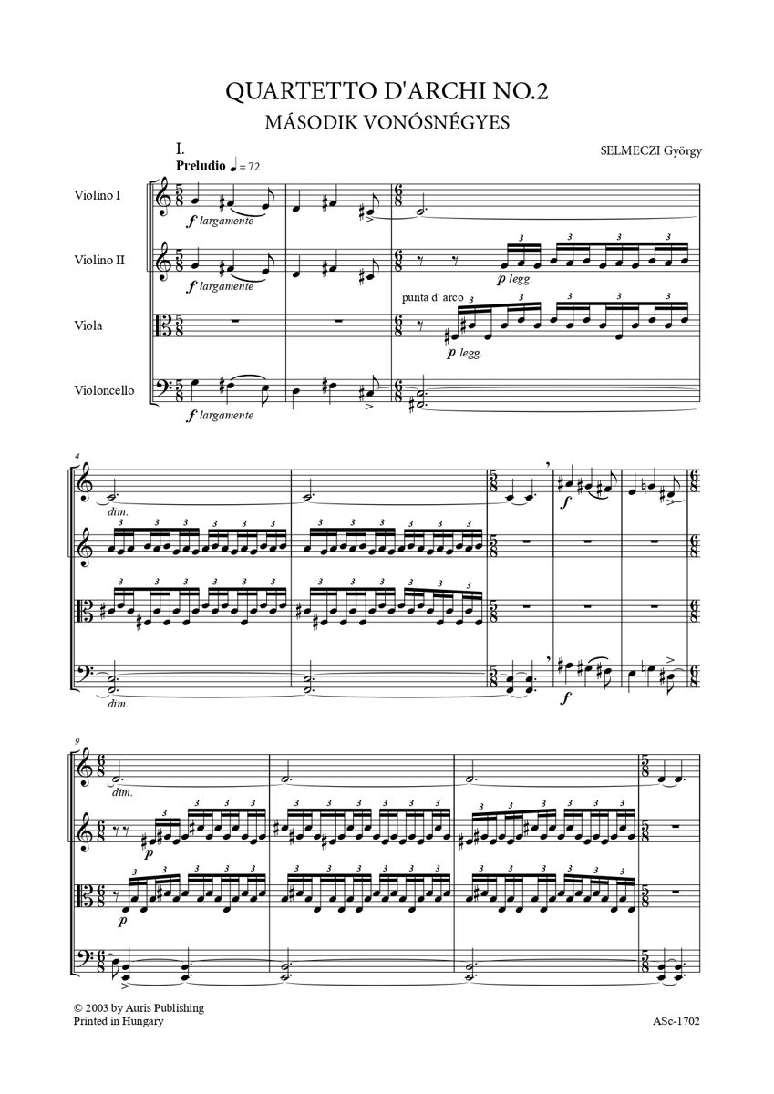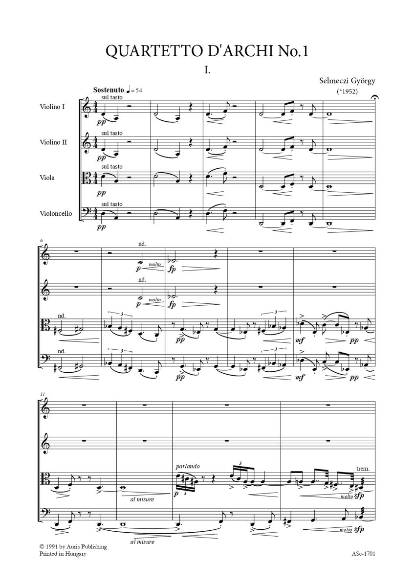 I. vonósnégyes (ISMN 979-0-801672-15-5) (